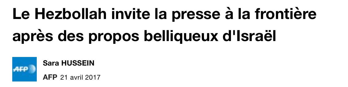L’AFP a choisi de ne pas reproduire cette phrase qui invalide son titre : l’armée israélienne affirme simplement son engagement à se défendre face au bellicisme… du Hezbollah.